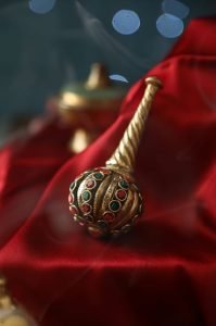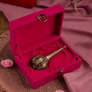 Elevate your spiritual décor with this exquisitely handcrafted Brass Hanuman Gada, a symbol of strength, devotion, and divine protection. Measuring 5 inches, this miniature mace is crafted from solid brass and designed with intricate detail, featuring a regal finish adorned with colored inlays that reflect traditional artistry.