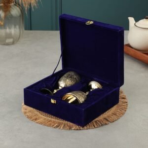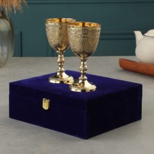Elevate your drinking experience with this exquisite set of 2 handcrafted wine glasses from Atya Luxury. Made from pure copper with a brass bottom, each glass is meticulously embossed with intricate grape vine designs, adding a touch of regal elegance to your barware collection.