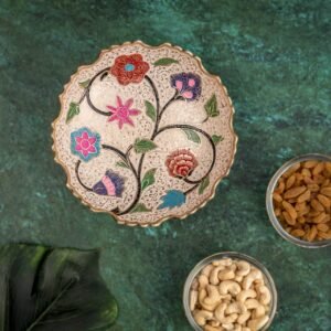 Its versatile 6-inch size makes it perfect for serving dry fruits, sweets, desserts, snacks, or fruits, while its vibrant design and metallic sheen make it a statement décor accent when not in use.