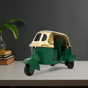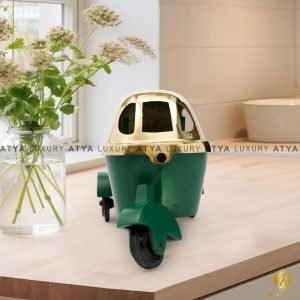 Engaging Auto Miniature : A three-wheeled miniature Brass Auto that offers an engaging and interactive experience for home decor and gifting. This Brass Auto features a vibrant green and Golden colour, adding a touch of indian traditional decor. With its compact size, this is easy to manage and can be enjoyed both indoors and outdoor decor. crafted with high-quality brass materials, this miniature auto is designed to withstand the rigours of active.
