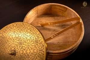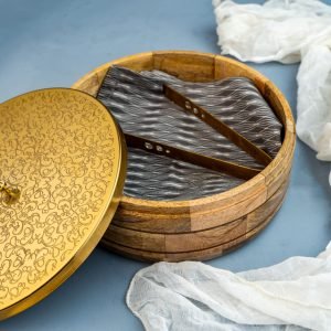 This roti box, which is expertly handcrafted from premium-grade mango wood and has a solid brass lid on top, combines tradition, beauty, and functionality.