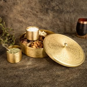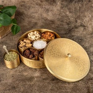 This brass masala box lends a touch of luxury and tradition to any area, whether it is used for everyday cooking, special occasions, or sophisticated presents.